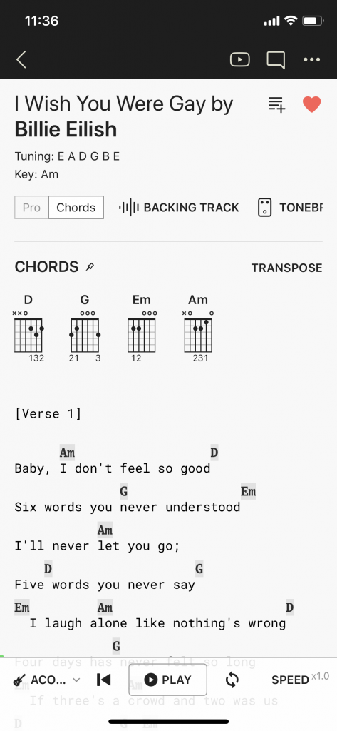 Aber mit der Premium-Version dieser App hat man vor allem Zugriff auf die offiziellen Akkorde und Tabs vieler bekannter Lieder. Die Macher hinter Ultimate Guitar Tabs haben Personal angestellt, das quasi nichts anderes tut, als beliebte Lieder in ihre Bestandteile zu zerlegen und der Community aufzubereiten. Darüber hinaus können die Benutzer der App selbst abstimmen, zu welchen Liedern sie sich offizielle Notenblätter wünschen. Das Spielen selber geht mit der App wirklich einfach. In den offiziellen Versionen gibt es auch immer einen Backing-Track, der im Hintergrund mitläuft. Man kann selbst einstellen wie schnell beziehungsweise langsam man spielen möchte und es ist meistens zwischen verschiedenen Instrumenten wählbar. Außerdem kann direkt in den Noten mit einem Klick eingesehen werden, wie die verwendeten Akkorde gegriffen werden.