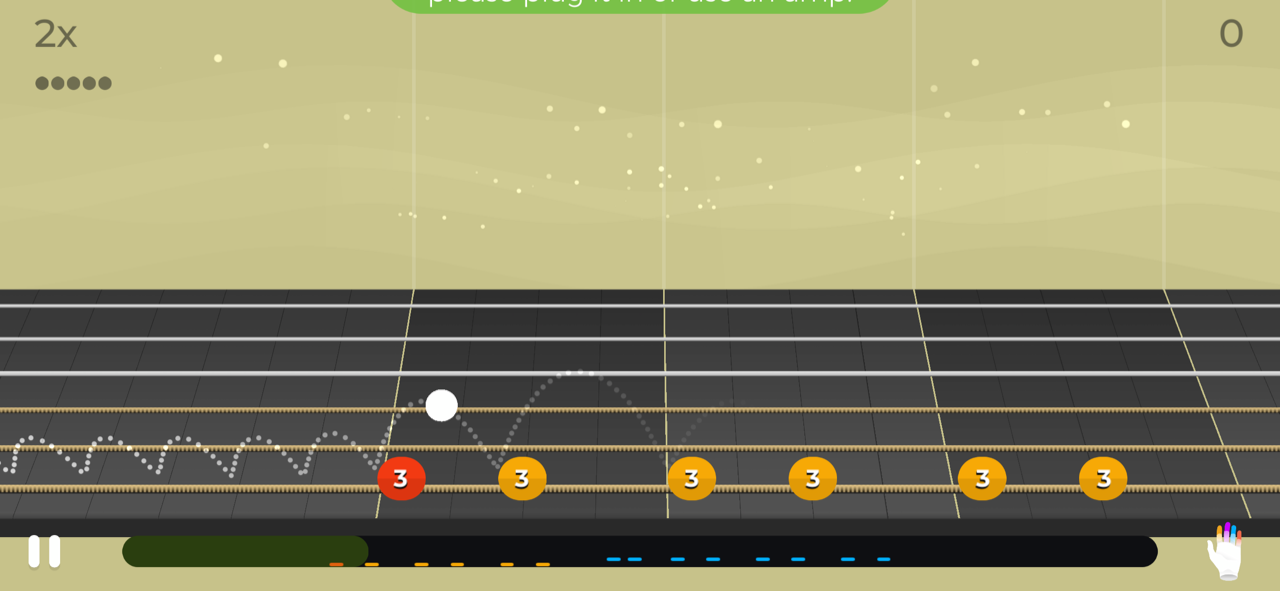 Der zweite große Vorteil, den Yousician gegenüber den anderen Programmen hat, ist die optische Darstellung. Die Noten werden auch auf einem 3D-Griffbrett angezeigt und ein hüpfender Punkt weist euch darauf hin, wann ihr spielen müsst. Ähnlich wie bei Guitar Hero, nur eben mit einer echten Gitarre, sammelt ihr in jeder Lektion Punkte, je nachdem wie viele Noten ihr richtig gespielt habt. Diese Punkte summieren sich dann und ihr könnt euch mit der gesamten Yousician Community messen. So lässt sich das Gitarre Lernen online doch aushalten!