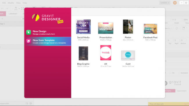 Gravit Designer ist ein vollwertiges Vektorgrafik-Programm mit Fokus auf intuitiver Benutzbarkeit. Einfache Aufgaben lassen sich mit dem Tool leicht umsetzen. Eine große Stärke gegenüber anderen günstigen Alternativen zu Adobes Grafik-Programmen besteht bei Gravit Designer in der unkomplizierten Platzierung von Elementen auf dem Template. So helfen hier diverse magnetische Hilfslinien und Clippings, Elemente genau dort zu platzieren, wo sie hin sollen.