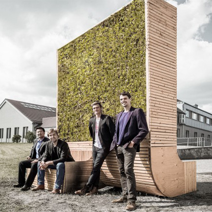 Im Kern stecken hier zwei Technologien drin: Die Biotechnologie – das ist das Moos als Pflanzenfilter – und die IoT-Technologie zur perfekten Versorgung dieser Moose in der Vertikalen, damit sie so effizient bleiben können. Moos funktioniert hier besonders gut, weil es eine sehr große Blattoberfläche hat. So kann es mehr Feinstaub und Schadstoffe aufnehmen. Und indem wir die Konstruktion vertikal aufstellen, können die Luftströme nicht daran vorbei oder darüber hinweg fließen, wie es bei einer Wiese der Fall wäre, sondern sie treffen direkt auf die Fläche. So wird noch mehr herausgefiltert“ , erklärt Liang Wu.