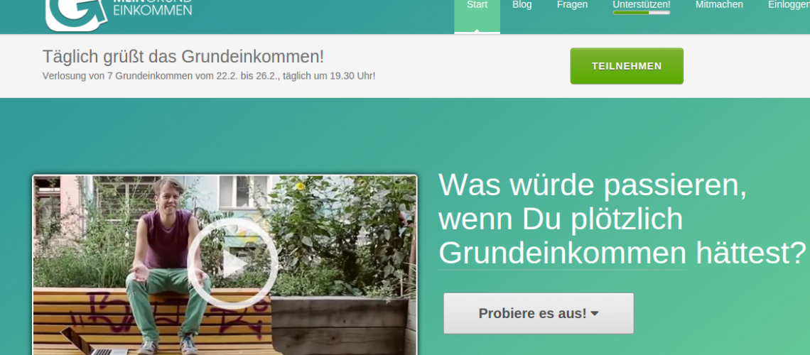 Als Michael Bohmeyer 2013 auf einmal selbst über seine Internetfirma eine Art regelmäßiges Grundeinkommen ausgezahlt bekam, fragte sich der Programmierer, ob das nicht auch für andere Menschen funktionieren könnte und startete daraufhin seine Webseite. Hier sammelt er über Crowdfunding eben jenes Grundeinkommen für die Bewerber ein. Bemerkenswert ist, dass tatsächlich so viele Menschen das Projekt unterstützen und gerne Geld für andere spenden. Wie auch viele andere Ideen, die über öffentliches Geldsammeln im Netz finanziert wurden, zeigt sich auch hier: Wenn die Menschen eine gute Idee sehen, die sie begeistert, sind sie gerne bereit, dafür auch zu spenden. Eher vielleicht sogar, als wenn der Staat es ihnen vorschreibt. Somit haben Michael Bohmeyer und sein Team das Dilemma vieler Politiker zu diesem Thema geschickt umgangen – indem sie die Frage direkt an die Bürger weitergeleitet haben. Ob dies auch landesweit umsetzbar ist, könnte sich in der nächsten Volksabstimmung in der Schweiz über das bedingungslose Grundeinkommen zeigen.