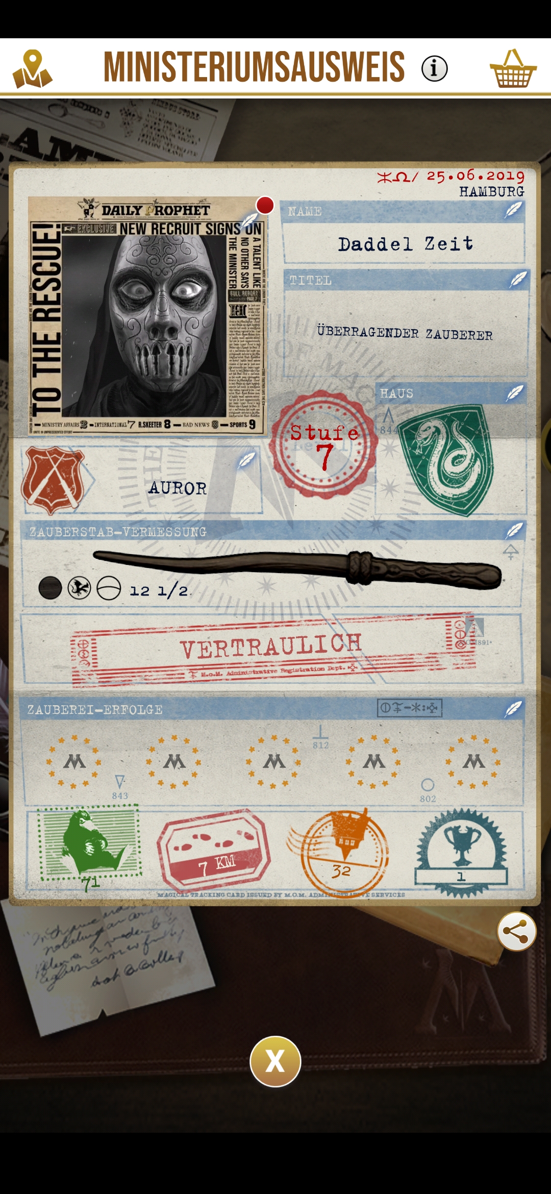 Heimisch wird es auch bei der Anpassung unseres Charakterprofils. In diesem dürfen wir uns nämlich unter anderem für ein Haus entscheiden und unseren Zauberstab aus einer umfangreichen Listen an Hölzern und Eigenschaften zusammenstellen. Diese sind allerdings (bislang) ohne spielerische Relevanz und lassen sich jederzeit ändern. Das Haus entscheidet lediglich über die Farbe unserer Figur auf der Karte. Tippen wir diese an, winkt sie uns übrigens zu. Bewegen wir uns schnell, etwa weil wir in der Bahn sitzen, fliegt unsere Figur außerdem auf einen Besen.