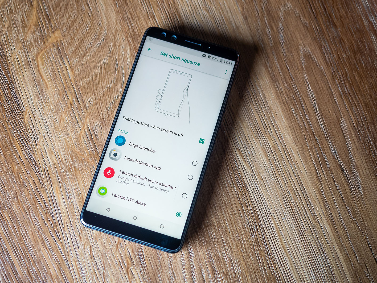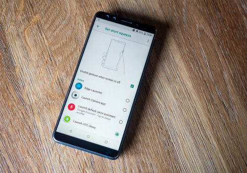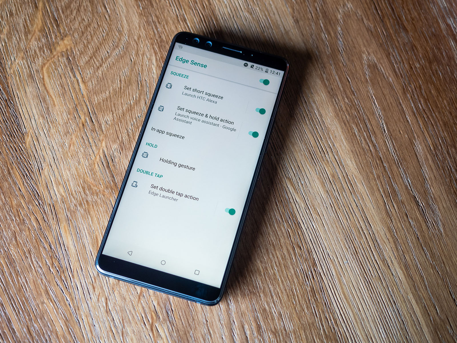 Außerdem will HTC mit einer überarbeiteten Version der Kantenbedienung „Edge Sense“ im zweiten Anlauf die Smartphone-Bedienung revolutionieren. Statt eines ans Quetschen heranreichenden festen Händedrucks sollen Nutzer häufig verwendete Funktionen mit sanften Berührungen an der linken und rechten Rahmenseite aufrufen können.