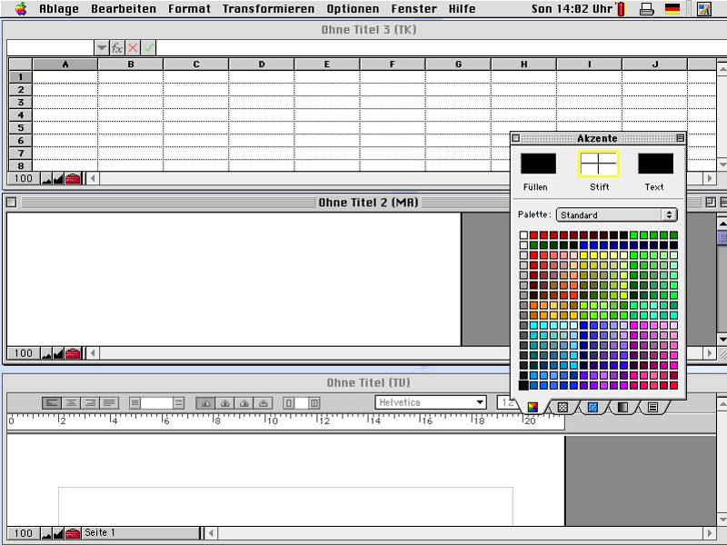 Wirklich lohnenswert ist aber Apple Works 6 auf dem iBook G3. Ein sehr umfangreiches Office-Paket mit Anwendungen für Textverarbeitung, Tabellenkalkulation, und das Erstellen von Zeichnungen, Bildern und Präsentationen. Dabei punkten die einzelnen Anwendung noch heute mit ihrem komplexen Funktionsumfang einerseits und der intuitiven Bedienung andererseits. So lassen sich etwa in der Textverarbeitung mit nur einem Klick bis zu neun Spalten zu einer Seite hinzufügen. Außerdem gefällt mir sehr gut, dass sich die verschiedenen Fenster in Apple Works teilen und übereinander anordnen lassen. Nutzer können einfach zwischen den einzelnen Anwendungen hin und her klicken und müssen keines der Fenster erst wieder nach vorne holen.