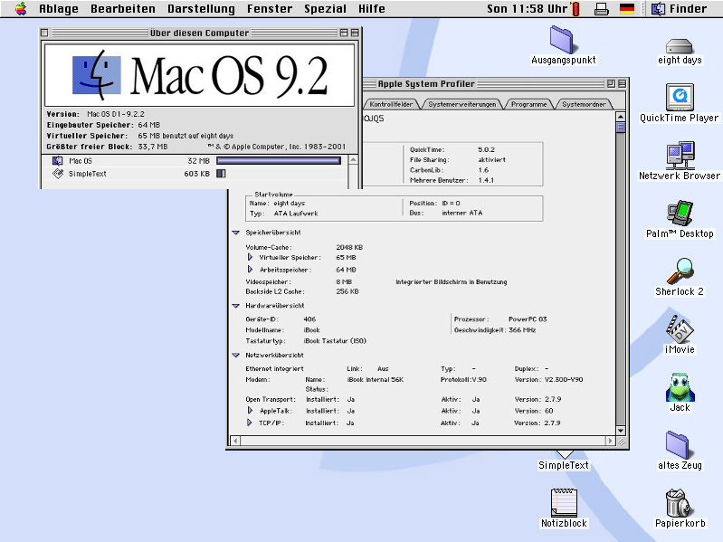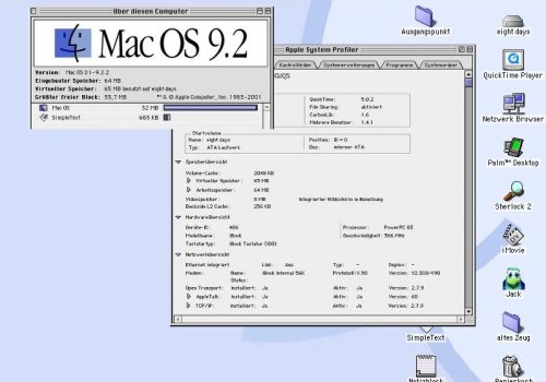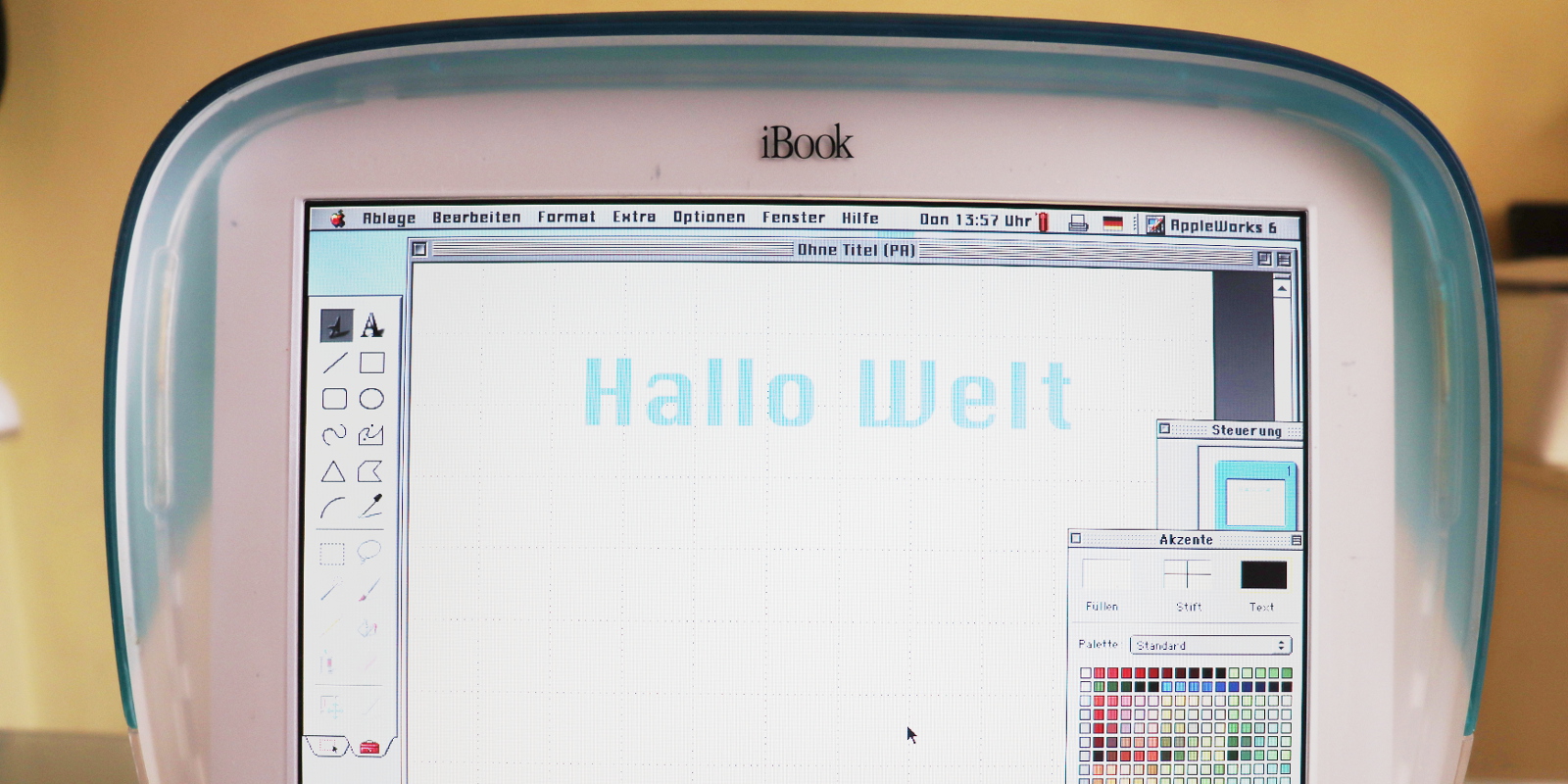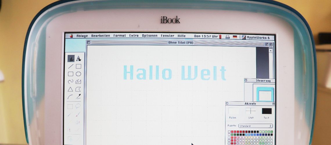 Schlagwörter: 20 Jahre iBook, Apple Platinum, Apple Works 6, iBook Clamshell, iBook G3, MacOS, macOS 9.2, Netscape Navigator