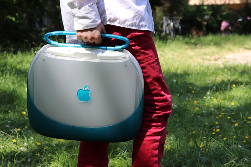 Apples farbenfrohes iBook G3 kam im Sommer 1999 auf den Markt. Kurz nach dem Launch des inzwischen legendären Desktop-Rechner iMac G3, bot Apple mit dem passenden Notebook nun einen weiteren betont anwenderfreundlichen Computer an. Zu dieser Zeit besaß ich ein silbernes Sony Vaio PCG-505. Ein superdünnes, leichtes und stylisches Windows-Notebook mit jeder Menge Schnittstellen und allerlei vorinstallierten Multimedia-Programmen von Adobe. Die bunten iBooks mit der Clamshell-Deckelkonstruktion und mit ihren Ausklapp-Henkeln fand ich damals eher albern und die hämischen Spitzenamen wie „Klodeckel“, „Barbie-Handtasche“ oder „Puderdose“ gerechtfertigt, wenn man sich die oft unbedarften User dazu ansah.