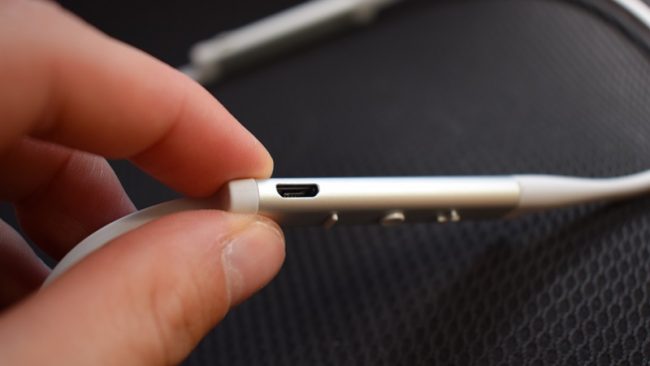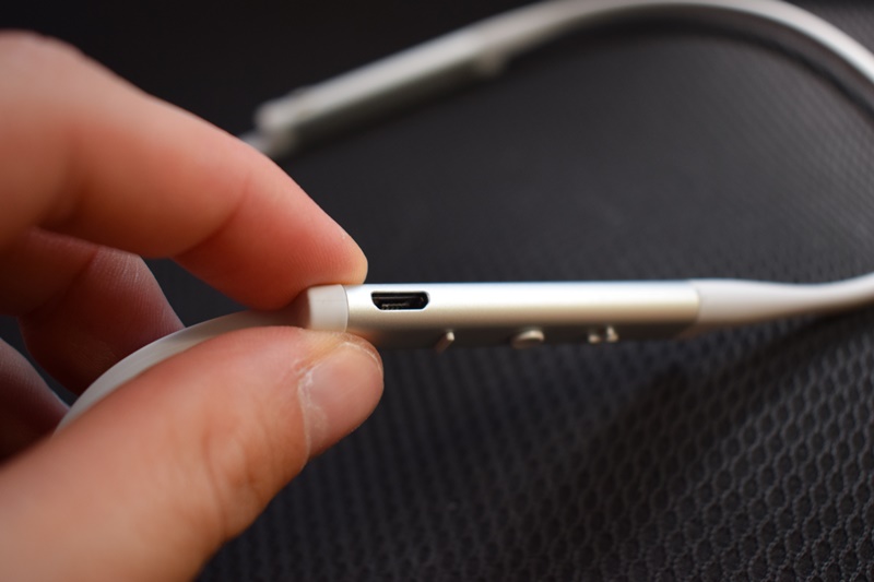 Das rechte Bedienelement ist für die Lautstärke- und Trackauswahl gedacht. Die linke Seite beherbergt den Akku, die Ladebuchse sowie den Powerknopf, mit dem die In-Ears ans Smartphone gekoppelt werden.