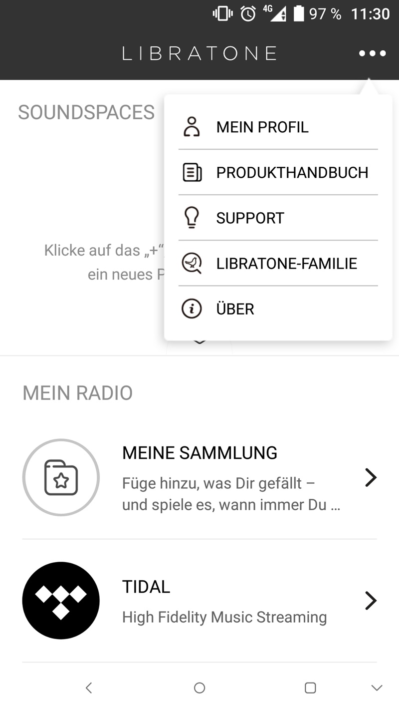 Die App bietet auch eine Verbindung zu den Streamingservices Tidal und Soundcloud. Ein gut gemeinter Service. Schade und unnötig ist hier allerdings die datenfressende Abschnorchelung via separatem Anmeldeprofil, das außerdem ein wenig zu oft mit Tipps nervt (die man aber auch ausschalten kann). Wer einfach seine Hörer ohne digitalen Spion nutzen will, muss leider auf die App verzichten.