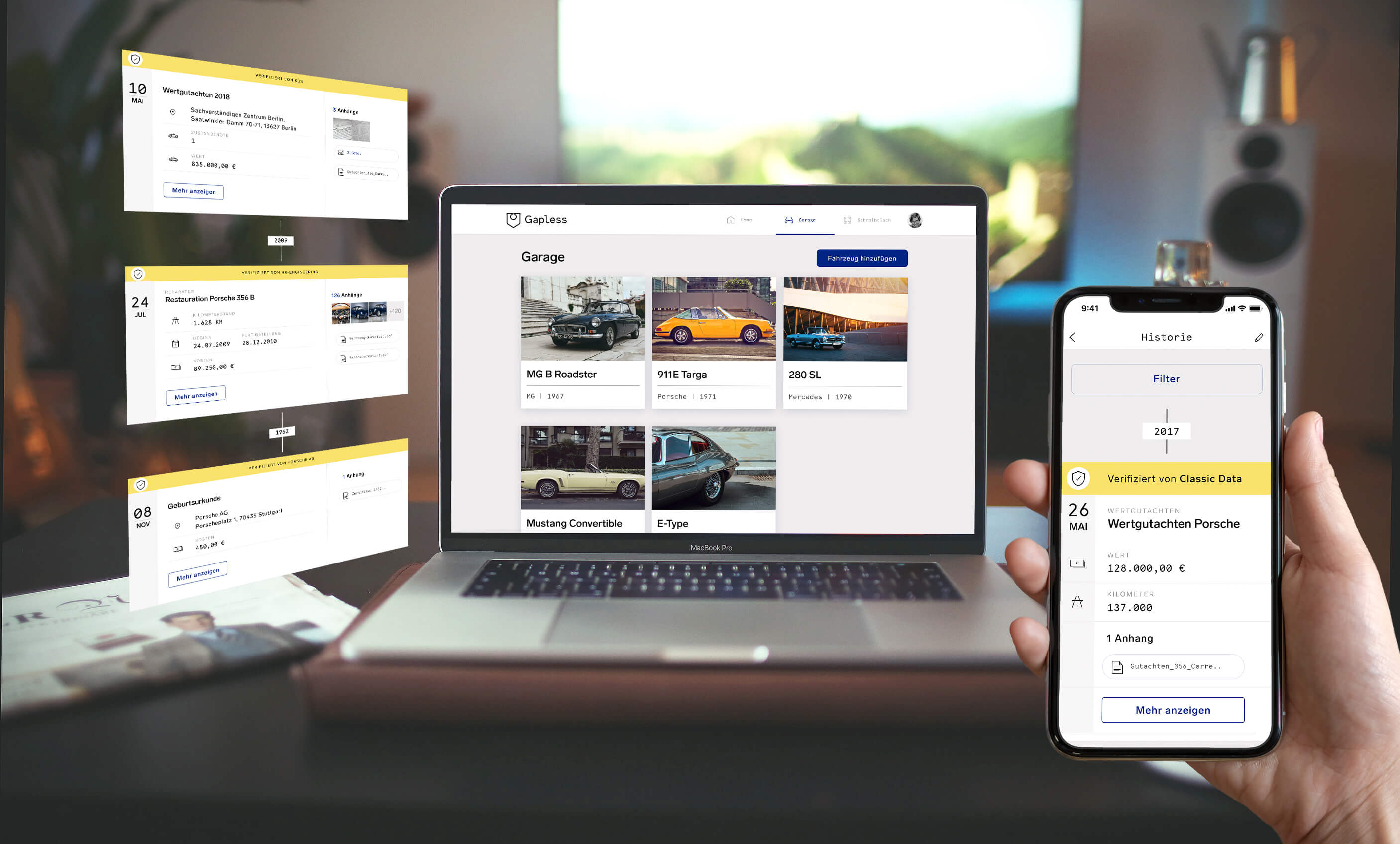 Die Automobilbranche verdient ihr Geld künftig nicht nur mit Fahrzeugen, sondern mit digitalen Dienstleistungen. Dass es dabei nicht zwingend um neue Mobilität oder Services gehen muss, die sich unter dem Themenschwerpunkt „Connectivity“ vereinen lassen, zeigt das Unternehmen Gapless. Seit mehr als einem Jahr baut das Berliner Startup die weltweit erste Blockchain-Plattform für Oldtimer und Premiumfahrzeuge auf. In der All-in-One-App lassen sich wertvolle Objekte erfassen, relevante Daten zum Fahrzeug hinzufügen, autobezogene Termine verwalten und verifizierte Dienstleistungen von Drittanbietern buchen. Eine lückenlose und technisch unveränderbare Fahrzeughistorie erleichtert den Werterhalt. Das Konzept ist so vielversprechend, dass mit Porsche bereits ein großer Player in Gapless investiert hat. Wir sprachen mit Jan Karnath, CEO und Co-Gründer von Gapless, darüber, welche Marktlücke das Angebot schließt und inwiefern es einen Beitrag zur digitalen Transformation der Automobilbranche leistet.