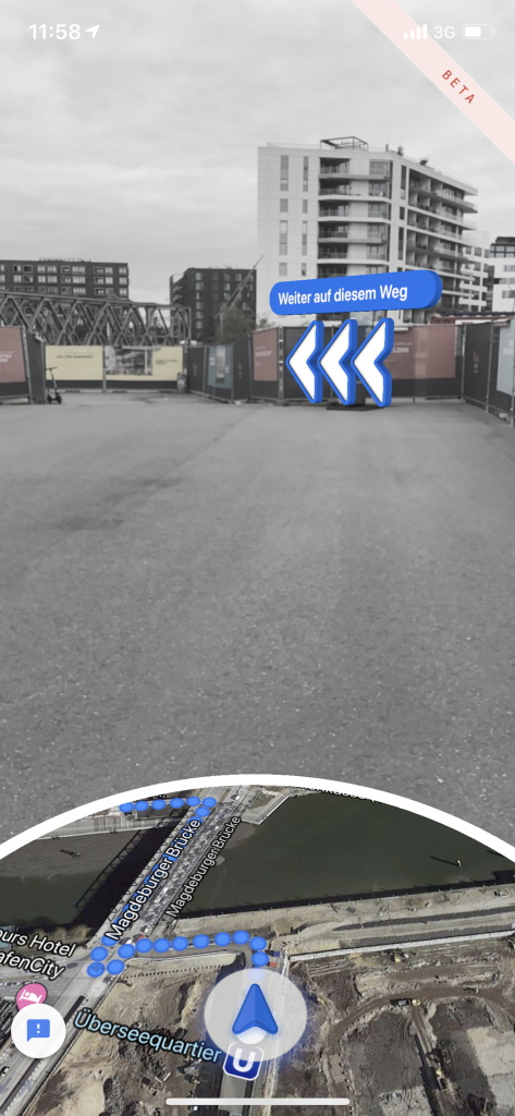 Auch in der Navigation hat sich etwas getan. Mit dem Update auf iOS 13 ist euer Smartphone jetzt auch fähig, die Navigation durch Apps wie Google Maps in Augmented Reality Manier abzubilden. Haltet ihr das Handy hoch, wird euch die Umgebung mit animierten Pfeilen als Wegbeschreibung angezeigt. Bekannte Gebäude oder Wegpunkte werden vom iPhone automatisch erkannt. Allerdings ist das System intelligent genug, um zu merken, ob ihr euch gerade bewegt oder nicht. Verwendet ihr den AR Modus während ihr geht, wird die Meldung eingeblendet, dass es gefährlich sein kann während des Gehens auf das Handy zu gucken und schließlich bricht der Modus ab. Gerade für die Orientierung an Orten, an denen man noch nie zuvor war, oder die sehr verwinkelt sind, kann die AR Unterstützung wirklich hilfreich sein.