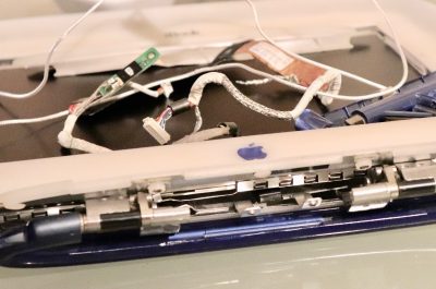 Der Adapter aus Aluminium wird im Hülleninneren in die Aussparung für die Smartphone-Kamera eingesetzt. Grundsätzlich kann er dort dauerhaft verbleiben. Weil er allerdings wenige Millimeter über die Hülle hinausragt, kann das Metall bei einer unachtsamen Bewegung die Tischoberfläche zerkratzen.