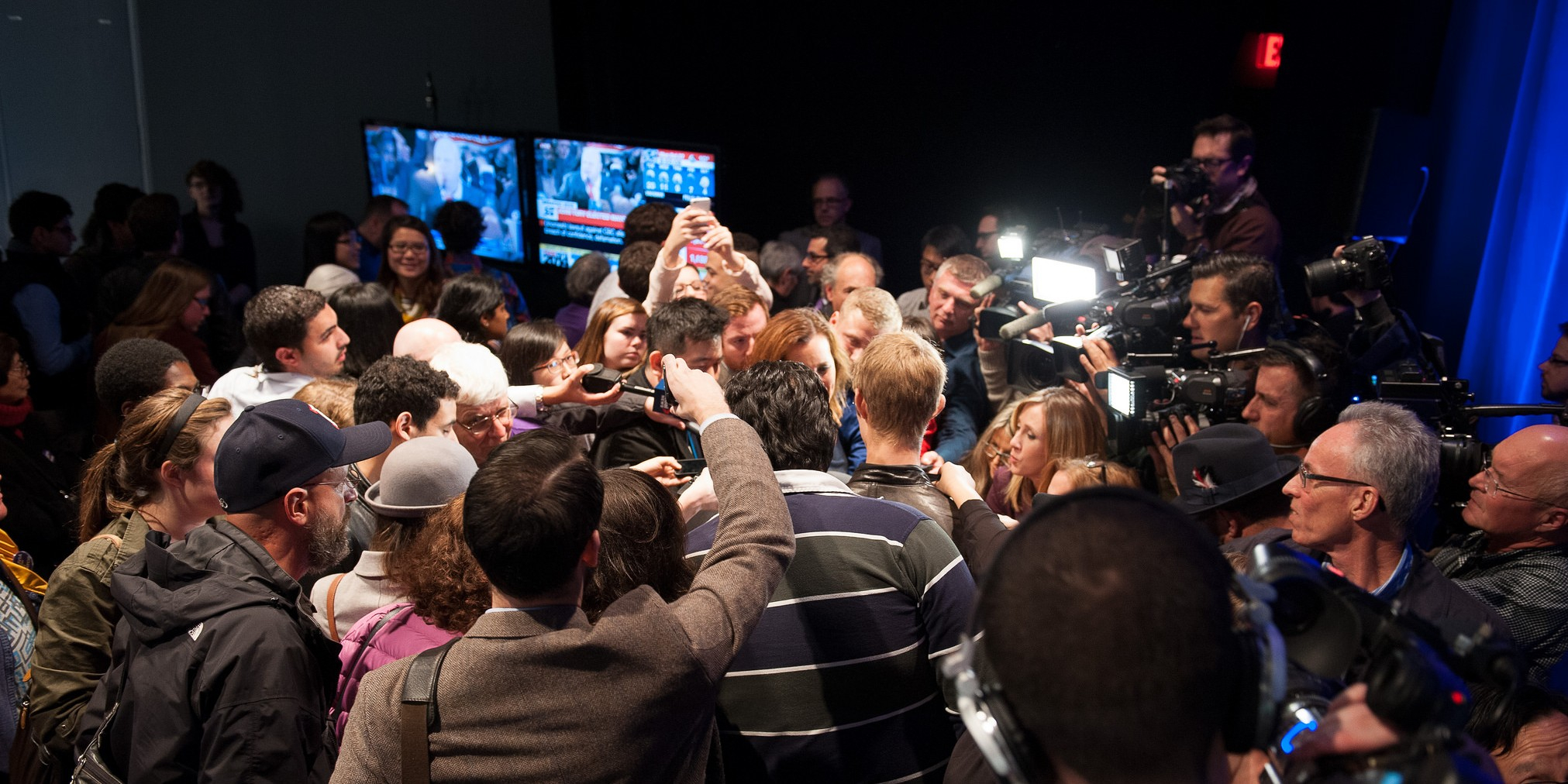 Image (adapted) „Media Scrum“ by Olivia Chow (CC BY 2.0)