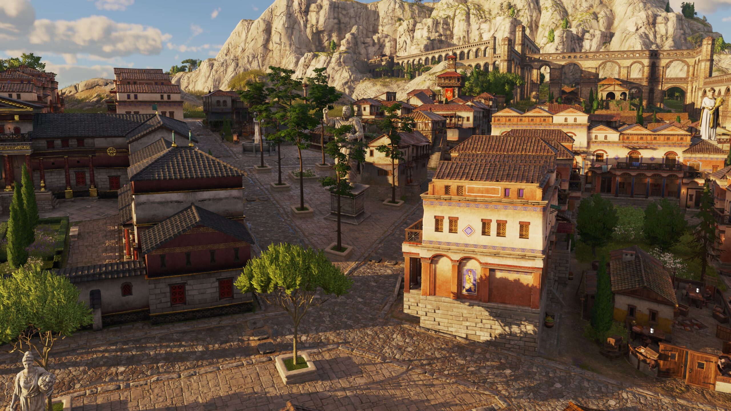 Allerdings wollen die spitzen Enden auch irgendwie gefüllt werden. Da Rom für eine streng rechteckige Bauweise bekannt ist, haben wir keine Gebäude, die speziell dafür gemacht sind. Auch die Dekorationen haben keine bewusst dreieckigen Elemente. Durch Bodenbeläge, Statuen und Bäume lassen sich die Ecken aber trotzdem gut füllen. Updates und DLCs dürfen aber gerne mehr Vielfalt in die Deko-Objekte bringen.