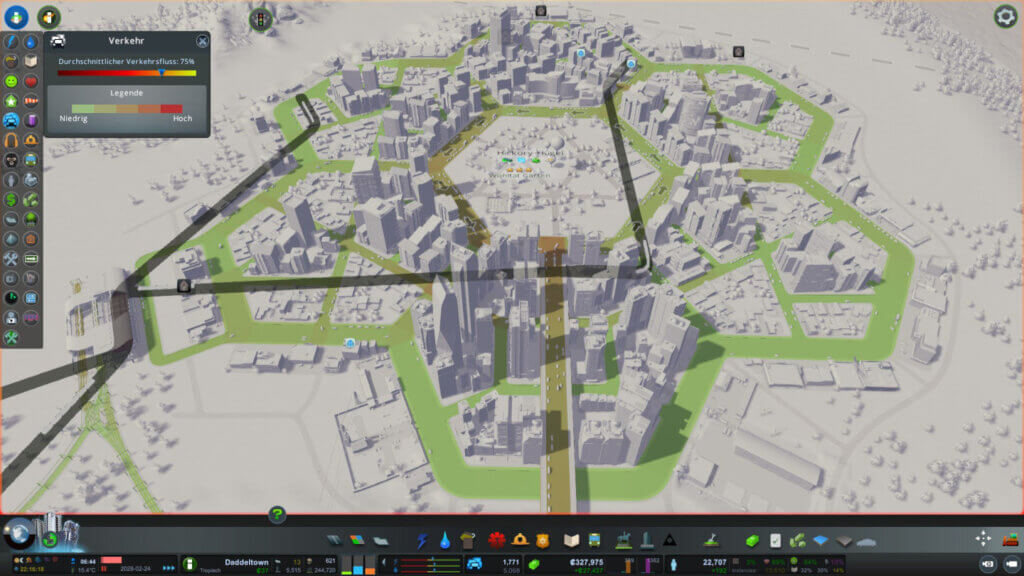 Während der finanzielle Druck sich irgendwann völlig verabschiedet, wird der Verkehr zu einer immer größeren Herausforderung. Gerade mit den dichterbesiedelten Zonen muss man später echt aufpassen. Die Hochhäuser bieten zwar viel mehr Wohnraum und Arbeitsplätze, sorgen aber auch für ungleich mehr Verkehr. Etwas umgekehrt ist es bei den Bürogebäuden, die zwar größer aussehen als klassische Industrie, aber deutlich weniger Verkehr bedeuten, allein weil sie keine Waren produzieren.