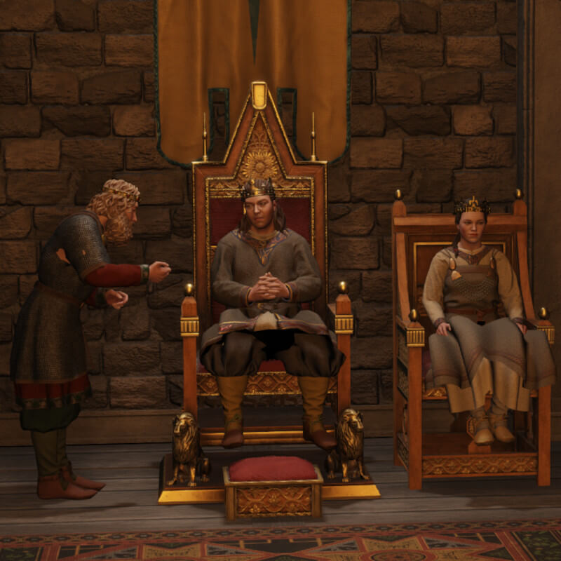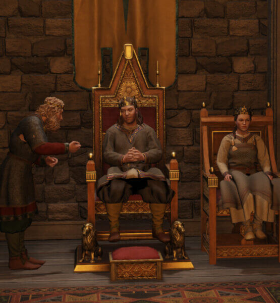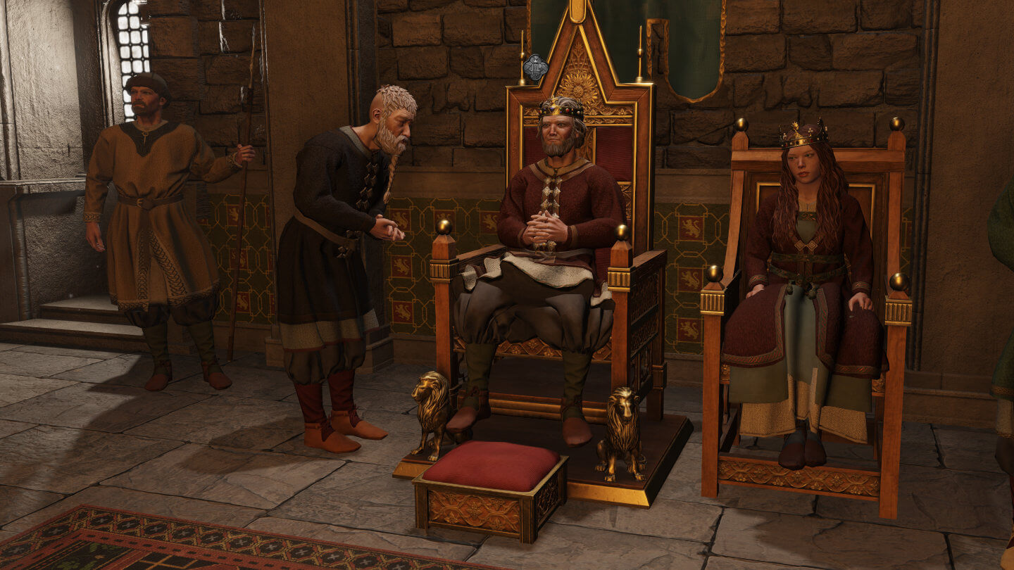 Beim Thronsaal handelt es sich um einen liebevoll ausgestalteten Raum, in dem sich neben dem König auch seine Höflinge rumtreiben. Das ist für ein Crusader Kings-Spiel ein Novum. Normalerweise findet das Spielgeschehen auf der Karte, in Statistiken und Textboxen statt. Hier profitiert Crusader Kings 3: Royal Court davon, dass das Hauptspiel bereits erstmals 3D-Figuren an Stelle von gemalten Avataren nutzte. Vermutlich auch eine bewusste Entscheidung für eben solche Features.