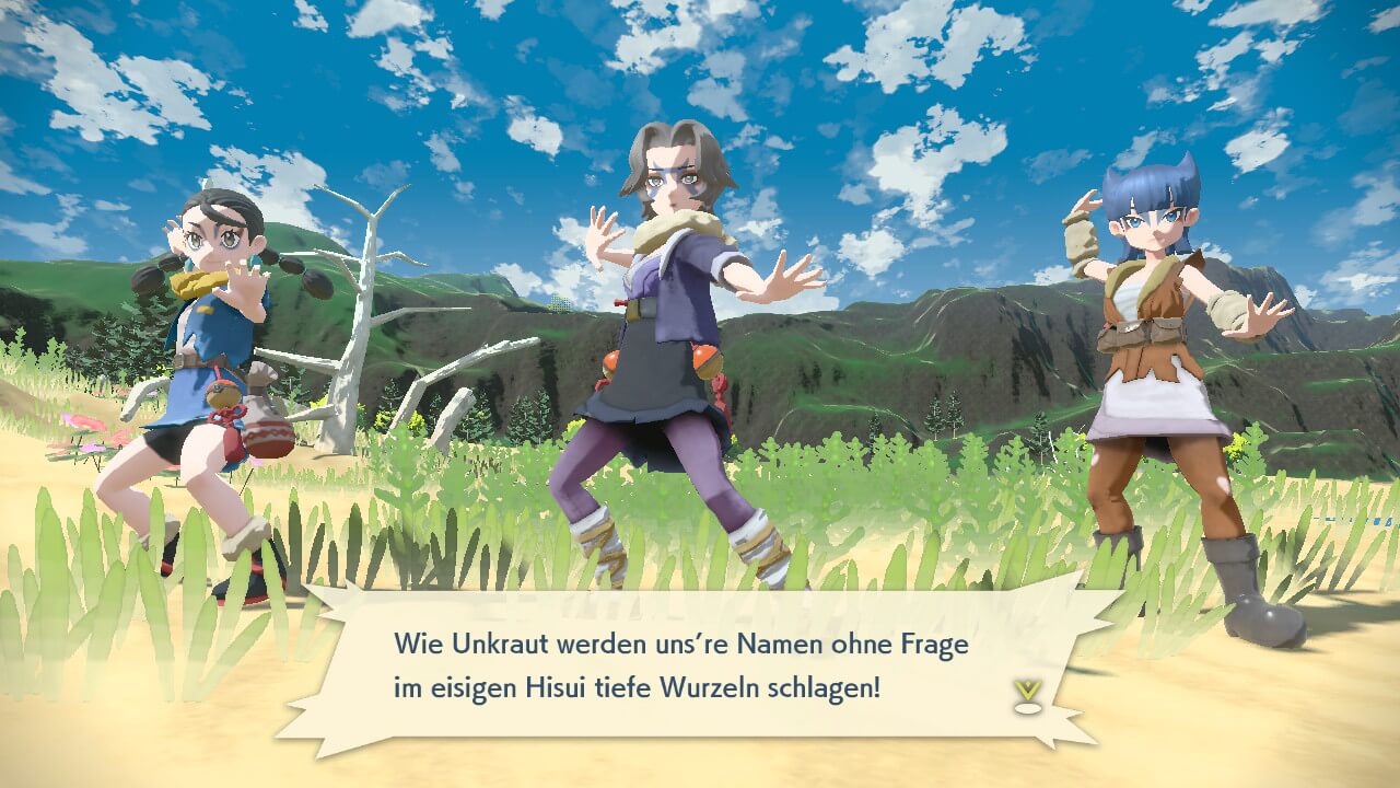 Außerdem spielt Pokémon-Legenden: Arceus zur Zeit, wo in der Sinnoh-Region – zu dieser Zeit noch „Hisui“ – Menschen und Pokémon zueinander fanden. Wir betreiben die ersten ernsthaften Forschungen zu Pokémon und das uns bekannte Zusammenleben beginnt erst. Die Menschen haben anfangs noch regelrecht Angst und man macht uns deutlich, dass wir außerhalb des Dorfes bei den wilden Pokémon den Tod finden würden.