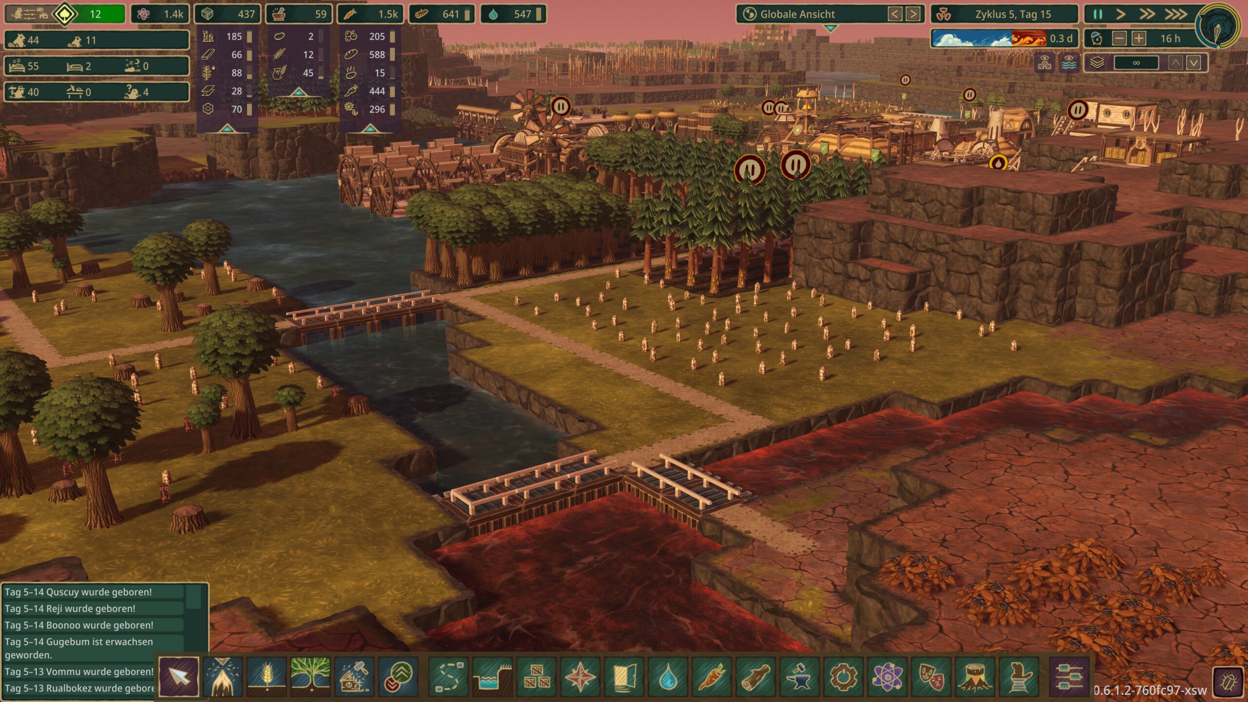 Damit lässt und das Tutorial allerdings auch schon von der Leine. Auf Dürren und Faulwasser bereitet einen das Tutorial leider nicht vor. Ebenso wenig gibt es uns eine Idee davon, wie man im Spiel am besten in die Höhe baut.