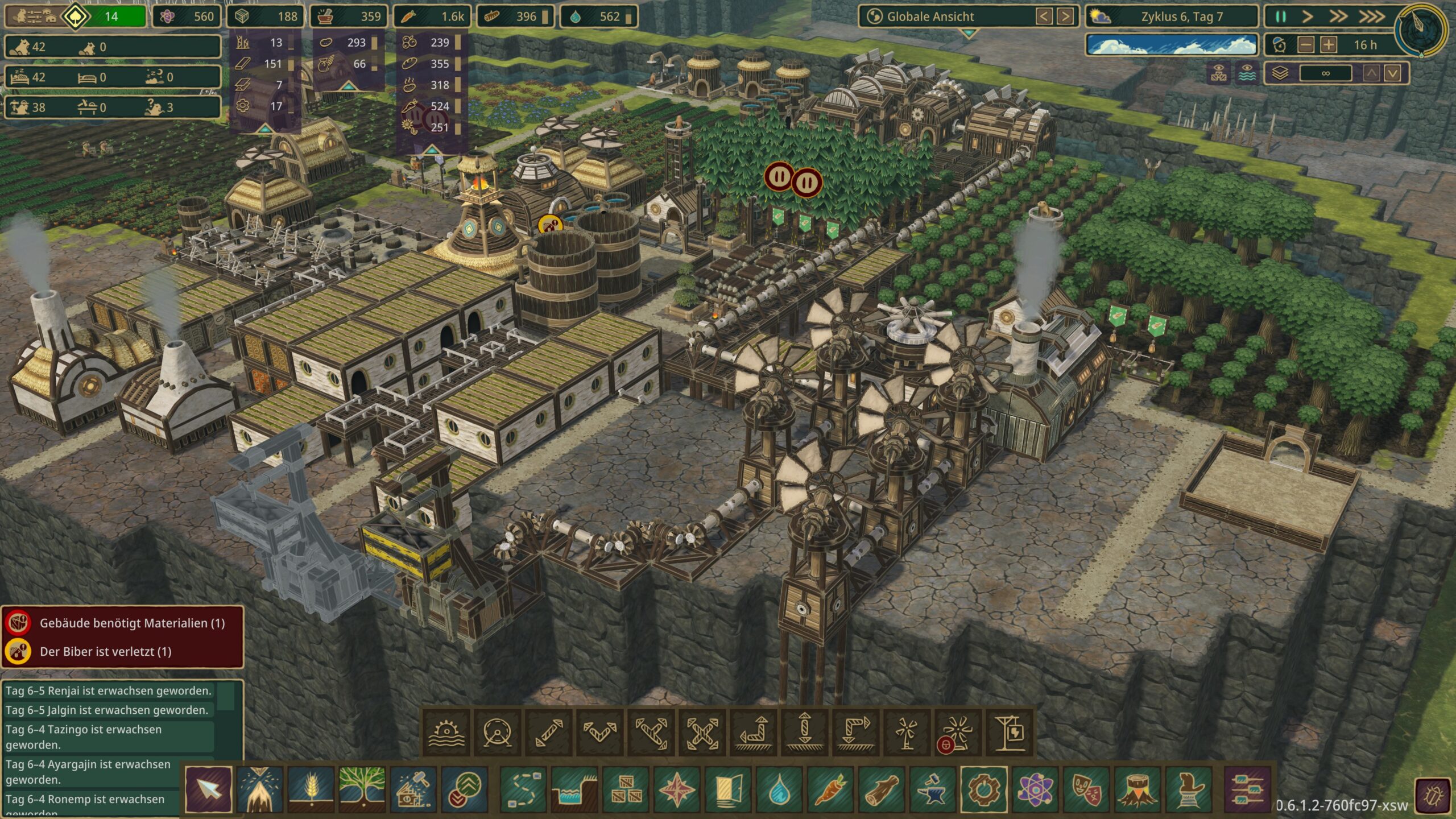 Als Fraktion kann ich zu Beginn zunächst nur die naturliebenden „Rustikalruten“ auswählen. Habe ich diese im Spiel auf einen bestimmten Wohlbefinden-Wert gebracht, schalte ich die „Eisenzähne“ frei. Diese Biberfraktion ist deutlich industrieller und setzt auf wissenschaftlichen Fortschritt unter Missachtung der Umwelt. Weiter hinten in der Update-Historie wird deutlich, wie stark sich diese Fraktionen im Verlauf der Entwicklung eigenständiger entwickelt haben.