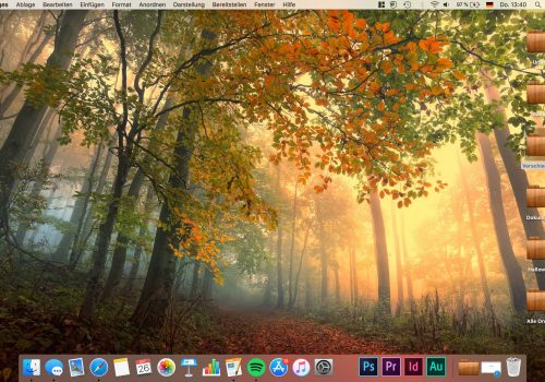 Um bestimmte Programme im Dock schnell aufrufen zu können, aber nicht allzeit sichtbar zu haben, könnt ihr den Programme-Ordner oder einen eigenen mit Programmen bestückten Ordner in das Dock integrieren. Diesen zieht ihr einfach neben euren Papierkorb. Wenn ihr nun draufklickt, werden eure darin enthaltenen Programme nach oben hin aufgefächert. Mit der Methode könnt ihr zum Beispiel eurer Dock verkleinern und dennoch genauso viele Programme darin anzeigen lassen.