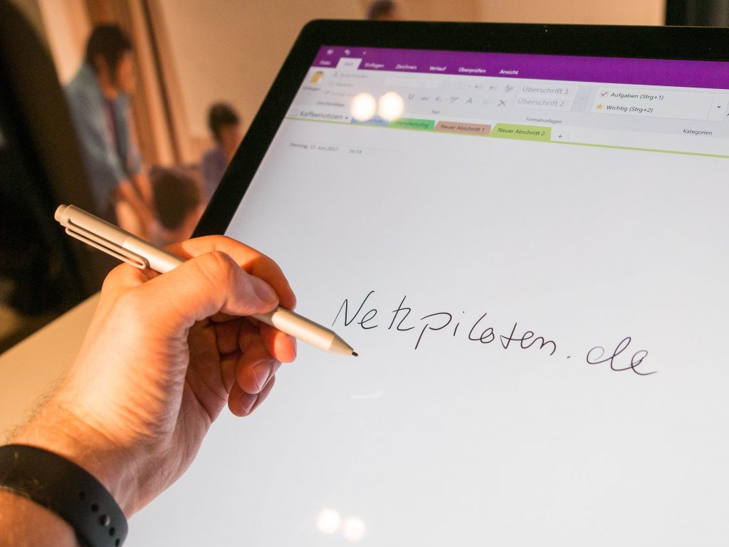 Mit dem Stylus Notizen in OneNote festzuhalten, ist eine Freude. Der Surface Pen reagiert schnell und präzise. In Microsoft Word verfügt der Surface Pen zudem über ein praktisches Zusatzfeature. So kann ich ganze Satzteile im Fließtext oder in einer Tabelle durch bloßes Durchstreichen löschen oder markieren. Die groben Streichgesten werden präzise ins Schriftbild umgesetzt.