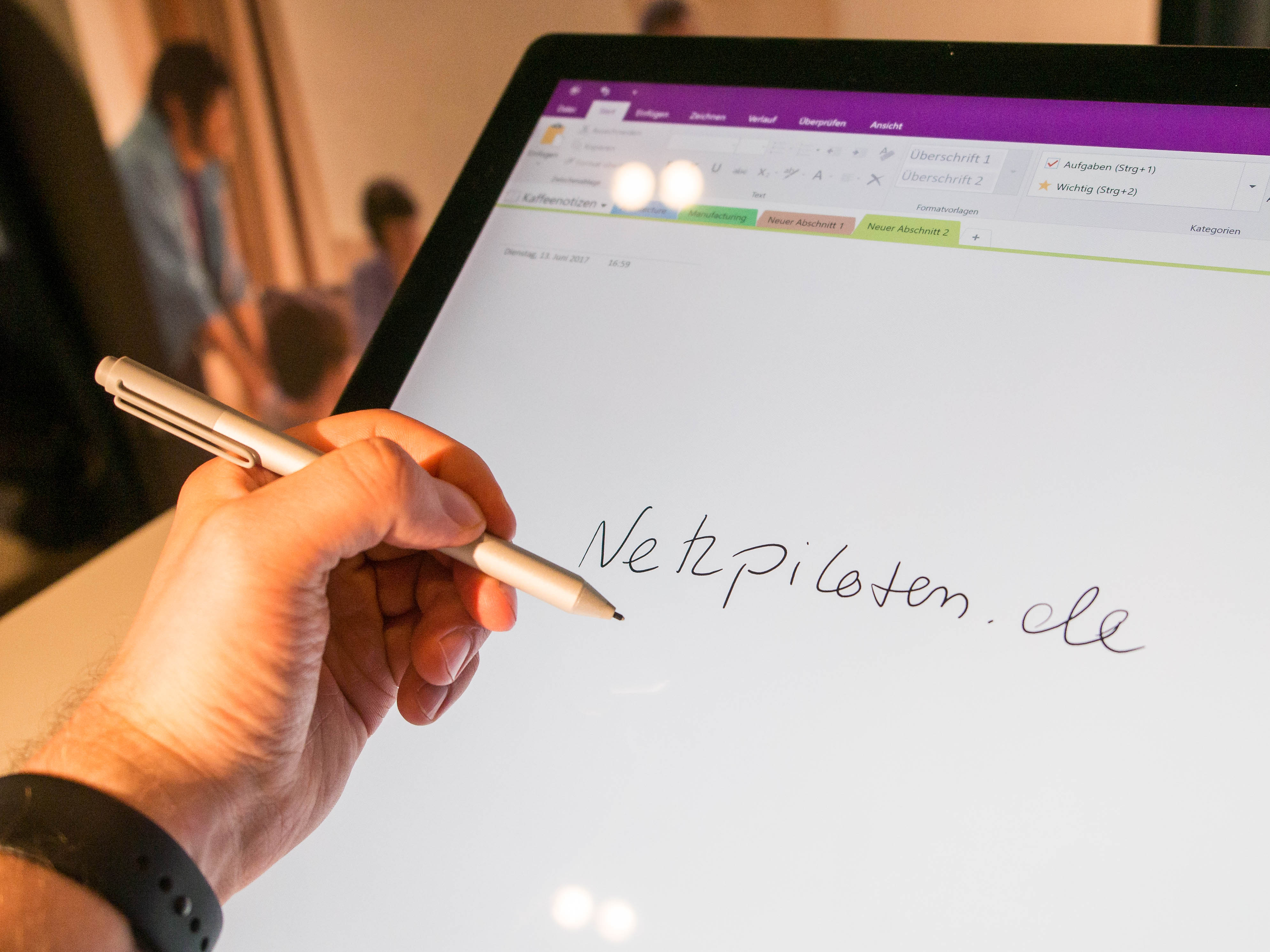 Positiv überrascht mich die Erkennungsleistung. Der Handballen meiner breit aufliegenden linken Schreibhand wird zuverlässig ignoriert, sodass er die Schrifteingabe nicht unterbricht. Zudem kann ich auch gleichzeitig problemlos die zweite Hand auf dem Bildschirm ablegen. Praktisch: Brauche ich den Surface Pen nicht, arretiere ich ihn an den magnetisierten Flanken des Displays.