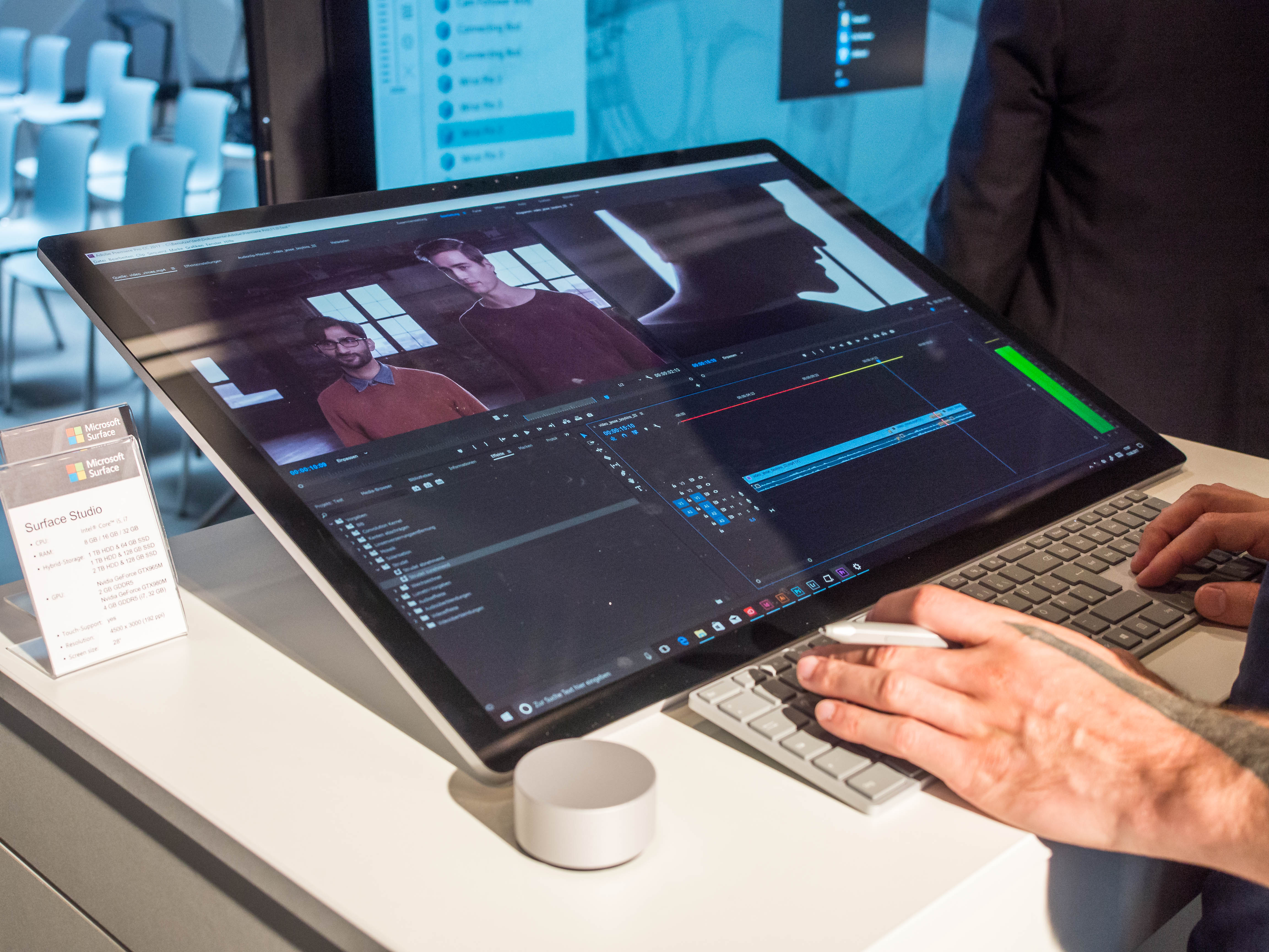 Apple hat die iMac-Fans zuletzt mit der Ankündigung neuer Versionen und eines aufgebohrten iMac Pro glücklich gemacht. Wer jedoch sein Herz nicht unverbrüchlich an macOS und Apples Ökosystem verloren hat, sollte auch einmal einen Blick auf Microsofts neuen All-in-One-Rechner Surface Studio riskieren. Auf dem Papier klingt er wie flachgelegter iMac mit zusätzlicher Tablet-Bedienung. Mit Touch-Screen, Kipp-Display und dem Eingabegerät Surface Dial will Microsoft Apple die Kreativ-Klientel abspenstig machen. Doch wie verführerisch ist die Alternative wirklich? Im Rahmen eines Launch-Events in Berlin konnte ich mir ein Bild vom Microsoft Surface Studio machen.