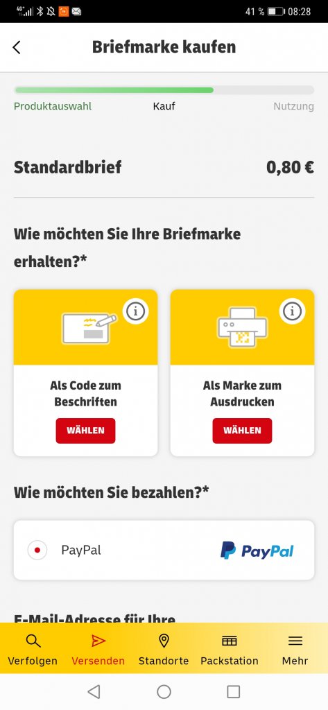 Mit dieser App bekommt ihr einen zweizeiligen Code, den ihr als Briefmarke auf den Umschlag kleben oder schreiben könnt. Etwas Aufwand macht es also schon, aber zumindest bleibt euch das Briefmarken-Lecken erspart.