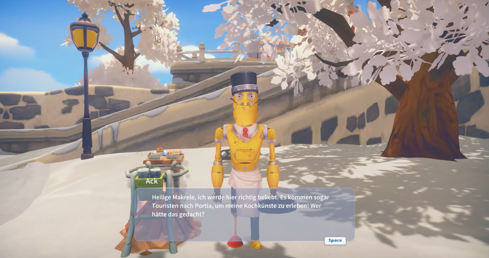 Nicht nur mit Aufträgen, sondern auch mit gelegentlichen Geschenken kann man so nach und nach in der Gunst der Bewohner steigen, die einem mit der Zeit richtig ans Herz wachsen. Ein Blick in die My Time at Portia-Wiki ist da nicht schlecht, um zu schauen, womit man den Bewohnern die größte Freude machen kann. Außerdem stehen dort auch die Geburtstage, die man sonst erst ab einer gewissen Freundschaftsstufe im spielinternen Kalender angezeigt bekommt. Ein Geschenk zum Geburtstag gibt besonders viele Beziehungspunkte.