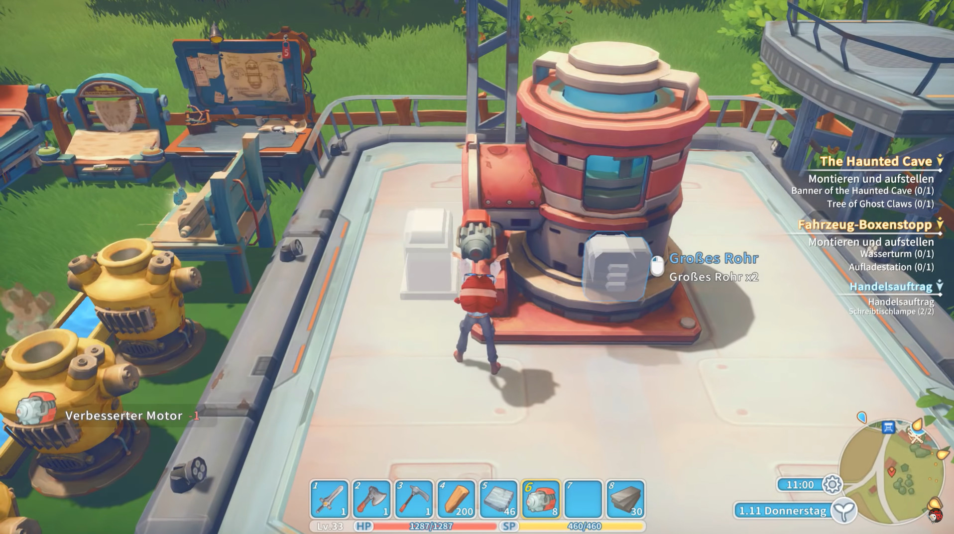 Diese Quests sind oft größere Bauprojekte, die teils mehrstufig aufgebaut sind. Dafür bekommen wir meist spezielle Baupläne für unsere Fertigungsstation. Diese Aufträge bringen nicht nur mehr Geld und Rufpunkte, sondern erweitern auch Stück für Stück die Welt. Als ersten großen Auftrag sollen wir eine Brücke zu einer kleinen Insel bauen. Anschließend können wir auf der Insel ein paar zusätzliche Ressourcen abbauen. Außerdem gibt es dort noch eine ominöse Höhle.