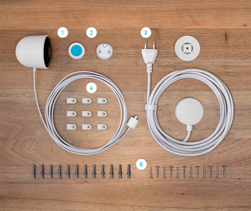 Mit einer Gesamtgröße von nur elf Zentimetern ist die Indoor-Kamera nicht auffällig oder störend, eingebunden in einen stabilen Metallfuß. Sie kann Dank eines eingebauten Magneten angebracht werden. Ist keine magnetische Oberfläche in der Nähe, tut es auch die mitgelieferte Wandhalterung. Die Kamera wird mit einem gängigen Micro-USB-Kabel verbunden. Nest hat sich hierbei bewusst gegen Batteriebetrieb entschieden, da die dauerhafte Stromversorgung dem System viel umfangreichere Möglichkeiten bietet.