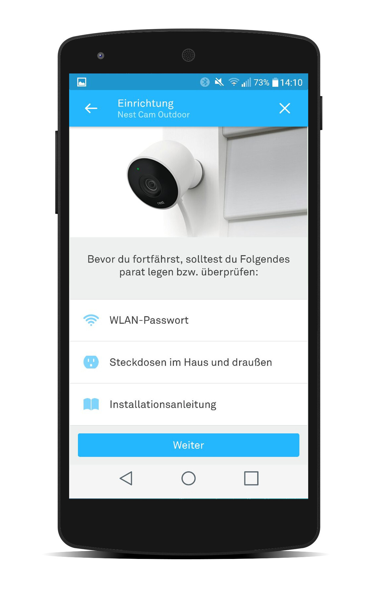 Um die Produkte verwenden zu können, muss ein Nest-Konto erstellt werden. Auf diesem Konto werden die Cloud-Daten gespeichert und gewährleistet, dass nur zugelassene Personen auf die Kameras zugreifen können. Für das Einrichten der Geräte ist momentan noch zwingend ein Smartphone oder Tablet mit der Nest-App notwendig. Einmal eingerichtet, sind sie allerdings auch vom Computer aus steuerbar.