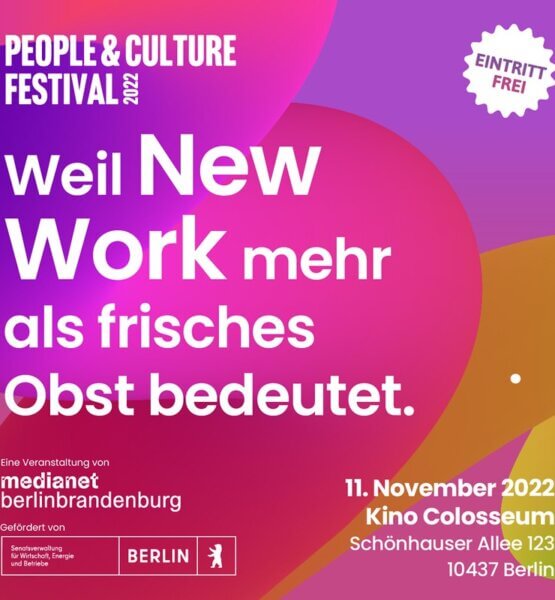 Am 11. November veranstaltet medianet berlinbrandenburg e.V. in Berlin erstmals das People & Culture Festival. Die Veranstaltung findet im Rahmen des Programms „Neustart Wirtschaft“ statt und bietet eine hervorragende Plattform für Absolvent*innen, Young Professionals und Quereinsteiger*innen, um mit Unternehmen und Weiterbildungsstätten in Kontakt zu treten.