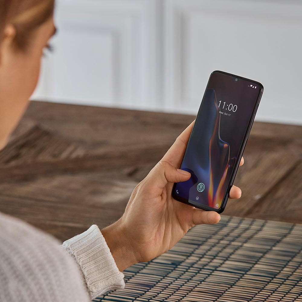 Nach dem Huawei Mate 20 Pro und dem Luxus-Modell Mate 10 RS hat auch das OnePlus 6T einen Sensor unter dem Display-Deckglas, der Fingerabdrücke unterscheiden kann. Image by OnePlus