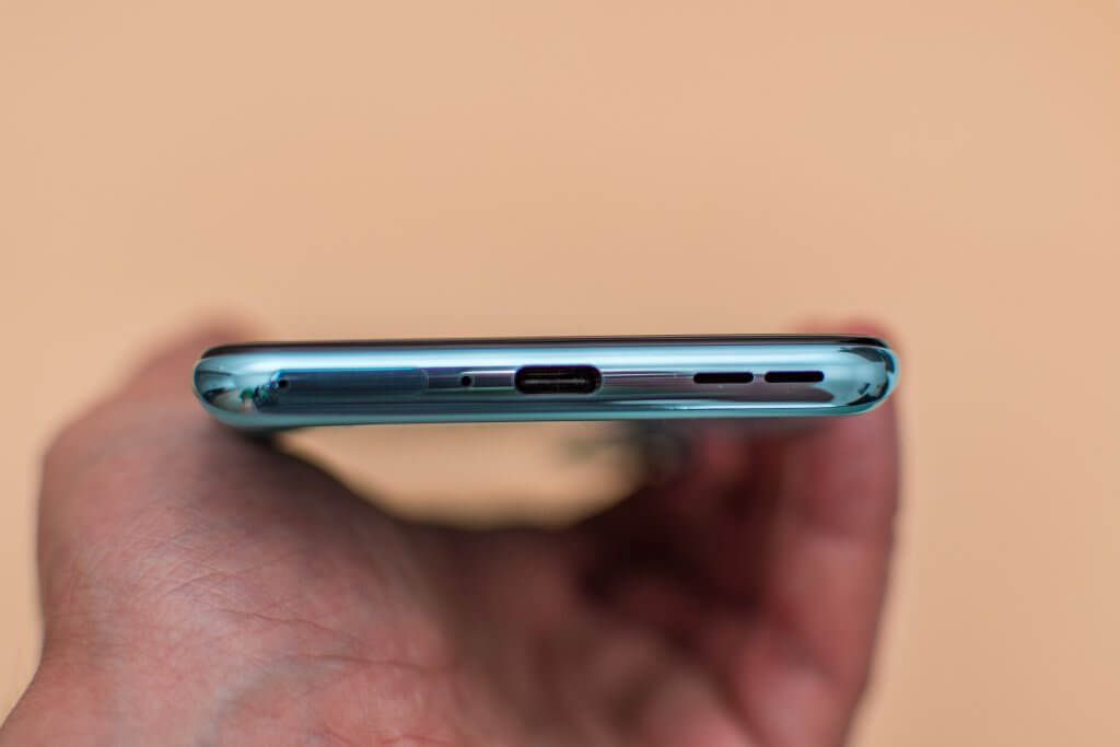 Während die vor einigen Wochen auf den Markt gebrachte Core Edition mit einem 3,5-Millimeter Audioanschluss daher kam, muss man beim OnePlus Nord 2 5G auf den digitalen USB-C-Anschluss zurückgreifen. Er befindet sich auf der Unterseite neben einem Dual-SIM-Slot und einem von zwei Stereolautsprechern. Aber dazu später mehr.