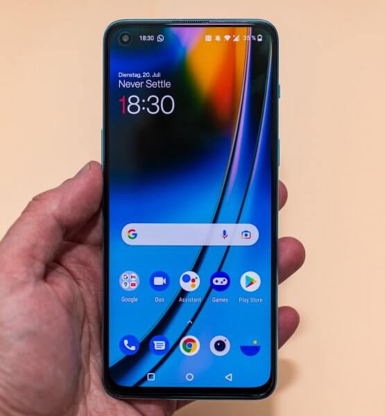 Eine der wichtigsten Komponenten eines Smartphones ist das Display. Es muss den Spagat zwischen Auflösung, Farbwiedergabe und Energieverbrauch schaffen. Das OnePlus Nord 2 5G überzeugt hier mit einem angenehm zu betrachtenden AMOLED-Panel. Es besitzt eine Auflösung von 2.400 x 1.080 Pixel und damit eine sinnvolle Pixeldichte von 440 Bildpunkten pro Zoll. Dank einer dynamischen Wiederholrate von bis zu 90 Hertz stellt die Anzeige Inhalte flüssig dar.