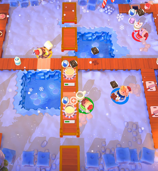 Euren eigenen Zuckerschock dürft ihr in Overcooked 2 mit den zwei neuen Köchen wählen. Ihr dürft sowohl in die Rolle eines Weihnachtselfs, als auch in die eines Schneemans schlüpfen, um eure Kunden glücklich zu machen.