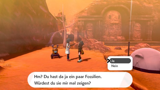Drachenfossil: Unterhalb des Camping-Zeltes auf der Route 6 als verstecktes, glitzerndes Item (nur in Pokémon Schild)
