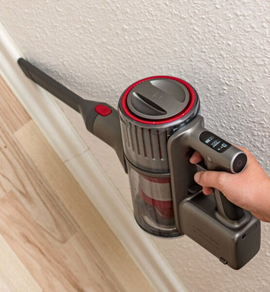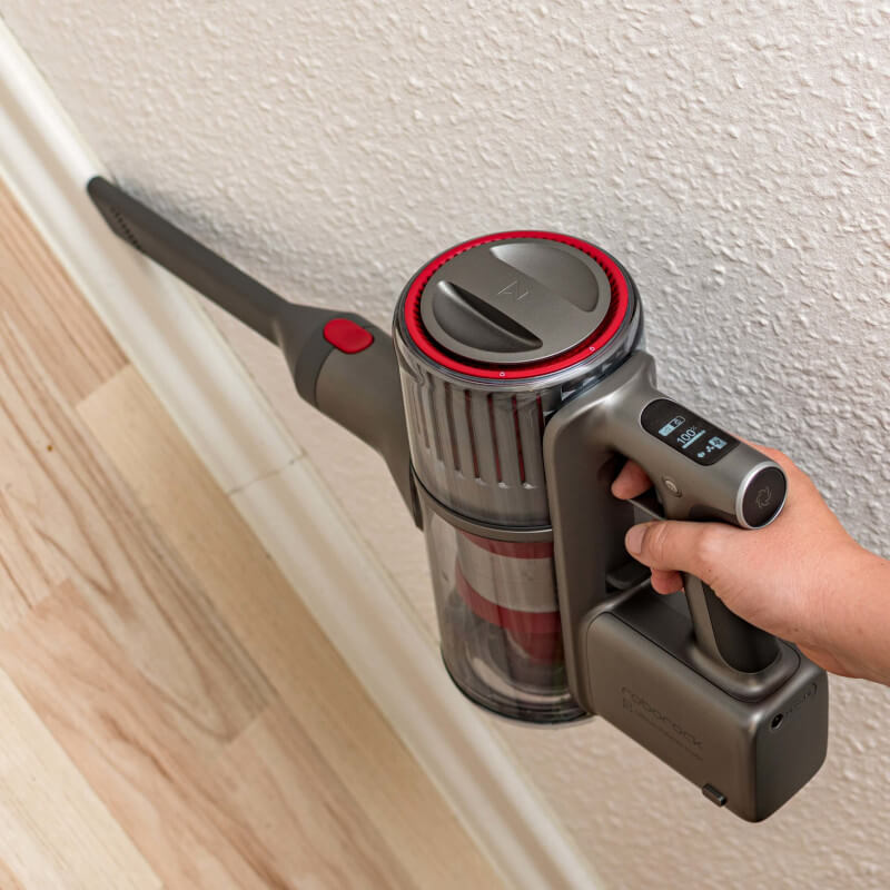 Die Zeit der schnöden Staubsauger ist vorbei. Während die Produkte in den vergangenen Jahrzehnten eher trist und grau aussahen, kommen aktuelle Modelle futuristisch und farbenfroh daher. Bereits beim Roborock H6 hat sich der Hersteller beim großen Konkurrenten Dyson inspirieren lassen. Auch der H7 überzeugt auf dem ersten Blick durch ein hochwertiges Design. Besonders Zusatzkomponenten wie das matt rote Boden-Saugrohr aus Aluminium, der robuste Flex-Schlauch oder die rotierenden Bürsten machen eine gute Figur.