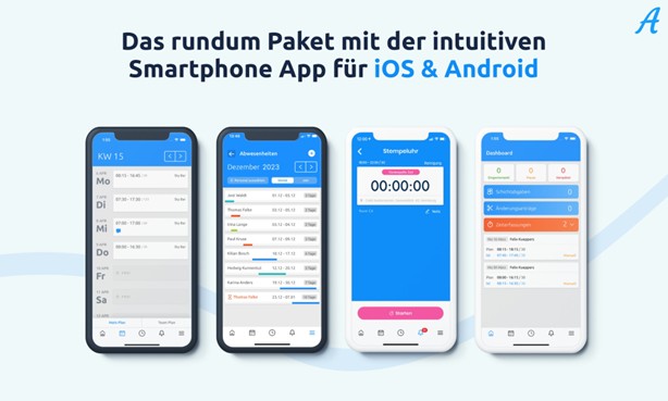 - Mobile App für Mitarbeiter (inkl. Push-Benachrichtigungen)