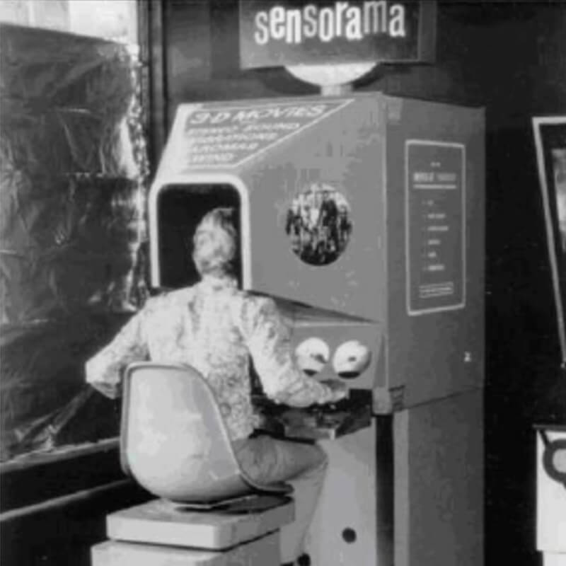 1955 spezifizierte der Kameramann Morton Heilig erstmals seine Vision des „Experience Theater“, einem multisensorischen Kino-Erlebnis. 1962 baute er den ersten Prototypen mit dem Namen, den er Sensorama nannte. Zusammen mit dem Sensorama produzierte er auch fünf Kurzfilme, die sich darüber schauen ließen.