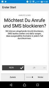 Zu Beginn möchte die App ein paar Sachen über dich wissen. Deinen Namen unter anderem und wobei du in der nächsten Zeit nicht gestört werden möchtest, wie etwa Arbeiten, Entspannen oder Schlafen. Du kannst dir aber auch ganz eigene Profile, frei nach deinen Wünschen, erstellen. Außerdem möchte die App wissen, ob du bestimmte Apps oder Anrufe und SMS sperren oder doch lieber zulassen möchtest.