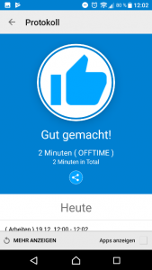 Zugegeben für meinen Test dieser App, ist meine Offtime-Zeit mit zwei Minuten nicht wirklich überragend…