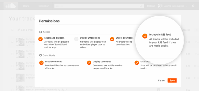 Podcasts können nun beispielsweise durch den RSS-Feed in verschiedene Podcast-Apps gespielt werden. Dieser kann unter dem Tab „Permission“ aktiviert und verändert werden. Im Creator Guide von Soundcloud wird genauer beschrieben, welche Möglichkeiten Nutzer damit haben. Der Embedded-Player wurde für den Launch der Podcast-Funktion neu gestaltet und lässt den Zuhörern die Sharing-Möglichkeiten verstärkt wahrnehmen. Twitter Audio Cards, Statistiken und die Integration weiterer sozialer Netzwerke machen den viralen Charakter sozialer Medien jetzt auch für Podcasts möglich.