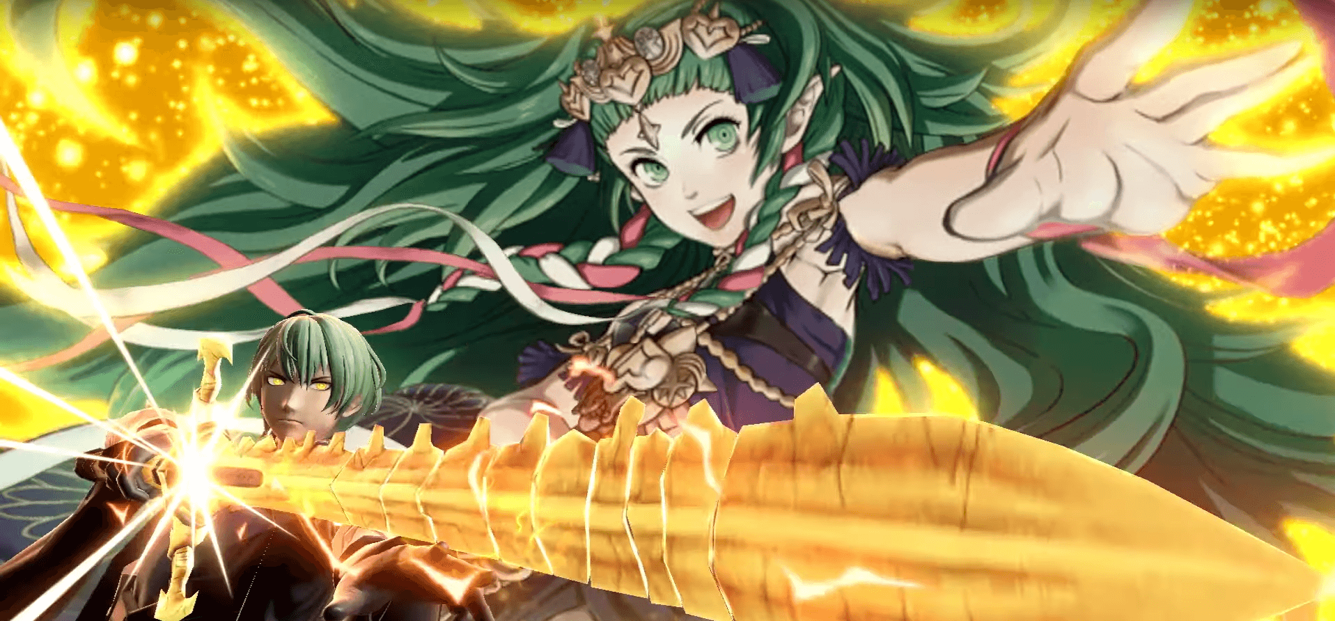 Byleth benutzt seinen Himmelsspalter. Die mysteriöse Sothis unterstützt ihn dabei.