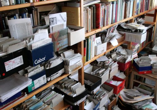 Das 760 laufende Meter umfassende Tessiner Archiv des legendären Ausstellungsmachers Harald Szeemann, wird von einem Chaos der Ordnungen in allen Ebenen beherrscht. Zettel an Schnüren von der Decke, Karteikästen mit Registern auf Tischen, Schubladenschränke, Regale, Kisten und Tüten, Versuche des Reihens und Stapelns, der Serien- und Haufenbildungen. “Unordnung ist eine[...] [...]
