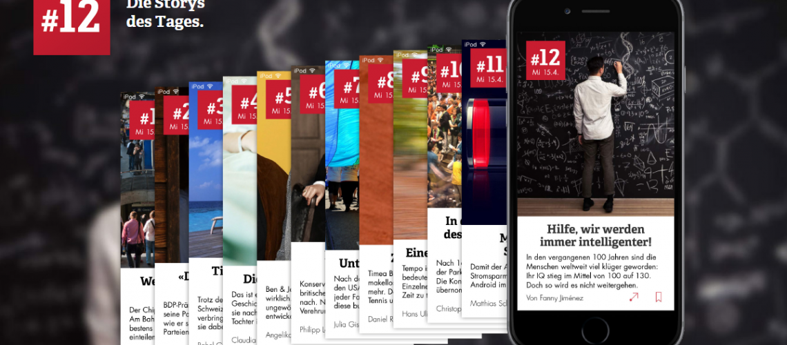 „Wir haben zahlreiche hochwertige Inhalte zu bieten”, sagt Michael Marti, Leiter der Digitalabteilung des Tages-Anzeiger, in einem Interview in seinem Büro im Hauptsitz von Tamedia. Marti überwacht die Entwicklung der App und leitet das Team von 12-App. „Die eigentliche Idee war, dass wir eine Plattform für den Verkauf der Inhalte in einer neuen Fassung und mit neuem Titel aufbauen wollten.“