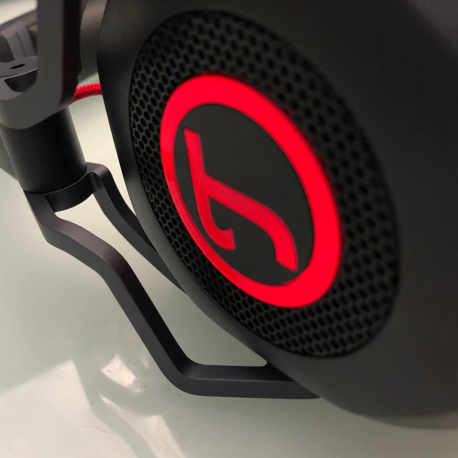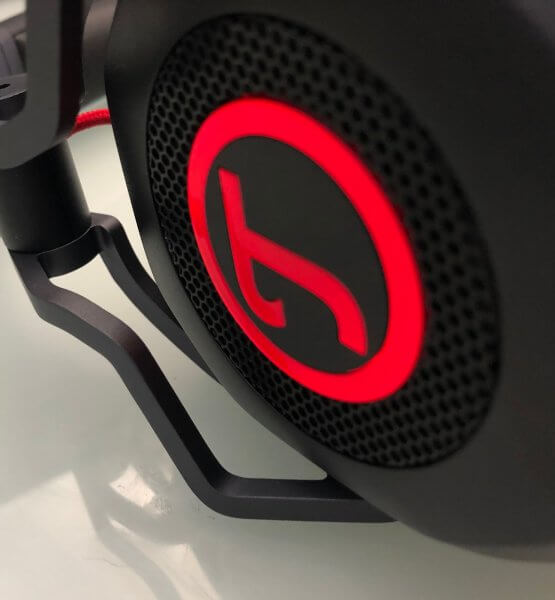 Schon wenn man das CAGE Gaming Headset das erste Mal in die Hand nimmt, merkt man, wie hochwertig es verarbeitet ist. Der Außenrahmen ist größtenteils aus Aluminium und das Kopfband aus Federstahl. Das Design wirkt modern und schafft das gewisse Extra, welches man von Gaming Equipment wünscht, ohne zu dick aufzutragen. Besonderer Hingucker sind die rot-leuchtenden Teufel-Symbole an der Außenseite der Ohrmuscheln, die mittels der dazugehörigen Software in ihrer Helligkeit eingestellt werden können. Auch die anderen roten Akzenten sind gut gesetzt und verschaffen dem Gerät einen interessanten Touch.