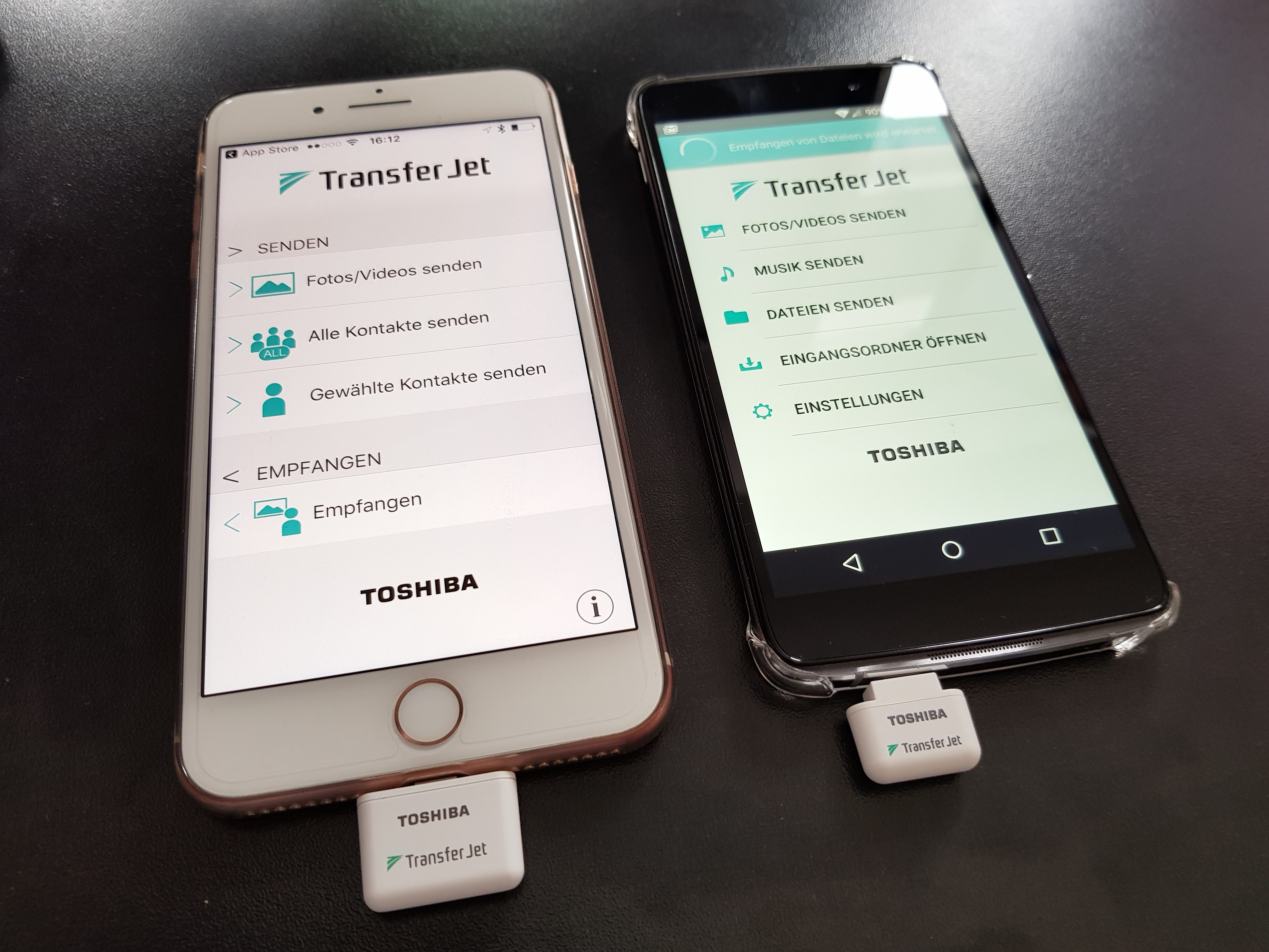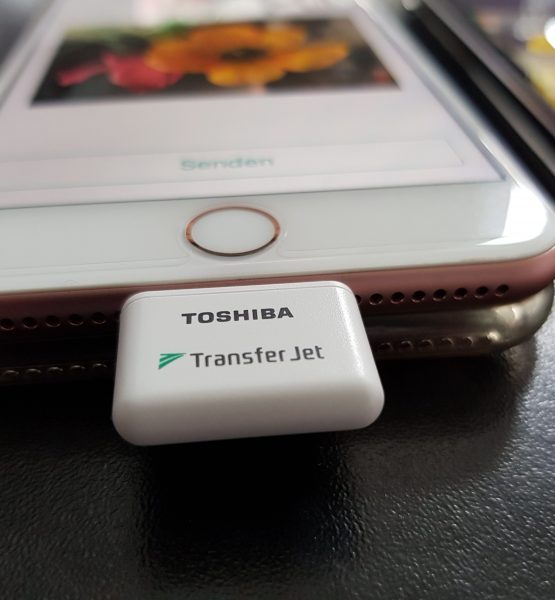Wer Daten eines iOS-Geräts auf ein Android-Handy schicken möchte, steht oft im Regen. Apples iOS-Baby ist für fremde Systeme tabu. In Zeiten von WhatsApp und Co. ist das eigentlich kein Problem. Fotos sind schnell über den Messenger verschickt. Schnell ist da allerdings auch das in Deutschland rar gesäte Datenvolumen verbraucht. Eine Lösung möchte hier Toshiba mit TransferJet bieten. Die von Sony entwickelte, immer noch relativ unbekannte Nahbereichskommunikationstechnik soll blitzschnell Daten zwischen unterschiedlichen Geräten hin- und her senden können. Ich habe mir die kleinen Aufsätze mal genauer angesehen, und einen großen Haken bei der Sache entdeckt.
