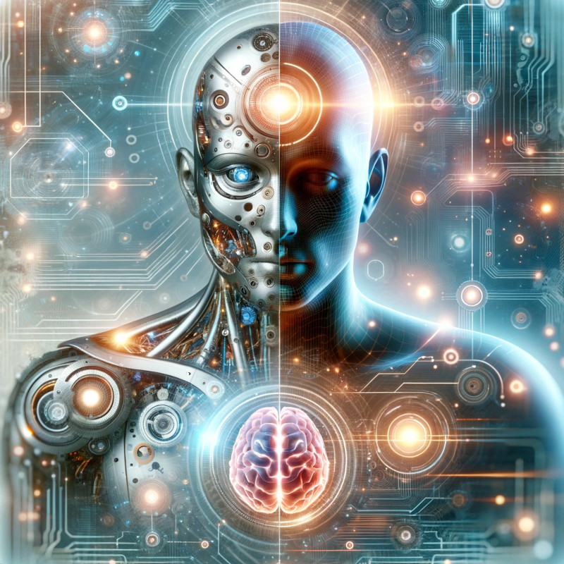 Eine weitere zentrale Idee des Transhumanismus ist die Verschmelzung von Mensch und Maschine, manchmal auch als „Cyborgisierung“ bezeichnet. Hierbei geht es darum, wie Technologie direkt in den menschlichen Körper integriert werden kann, um unsere Fähigkeiten zu erweitern. Dies könnte durch implantierte Mikrochips, Prothesen, die durch Gedanken gesteuert werden, oder sogar durch direkte Gehirn-Computer-Schnittstellen geschehen. Diese Technologien ermöglichen es uns, die Grenzen des Menschseins zu überschreiten, indem wir Fähigkeiten erlangen, die natürlicherweise nicht möglich wären, wie z.B. das Hören von Ultraschall oder das direkte Abrufen von Informationen aus dem Internet durch Gedanken.