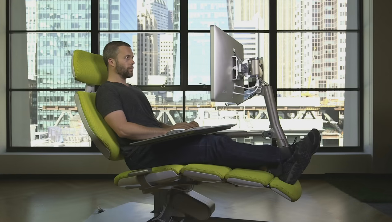 Was wäre das für eine Welt, in der nicht ständig neue verrückte Ideen autauchen? Eine davon ist zum Beispiel: Das Arbeiten im Liegen. Altwork hat einen Stuhl entwickelt, bei dem anhand von Magneten Bildschirm und Tastatur in der richtigen Position fixiert werden. Das System bietet insgesamt vier verschiedene Positionen an, die man per Knopfdruck verstellen kann. Für knapp 5.600 US-Dollar sollen die neuen entlastenden Arbeitsplätze im Jahr 2016 auf den Markt kommen.